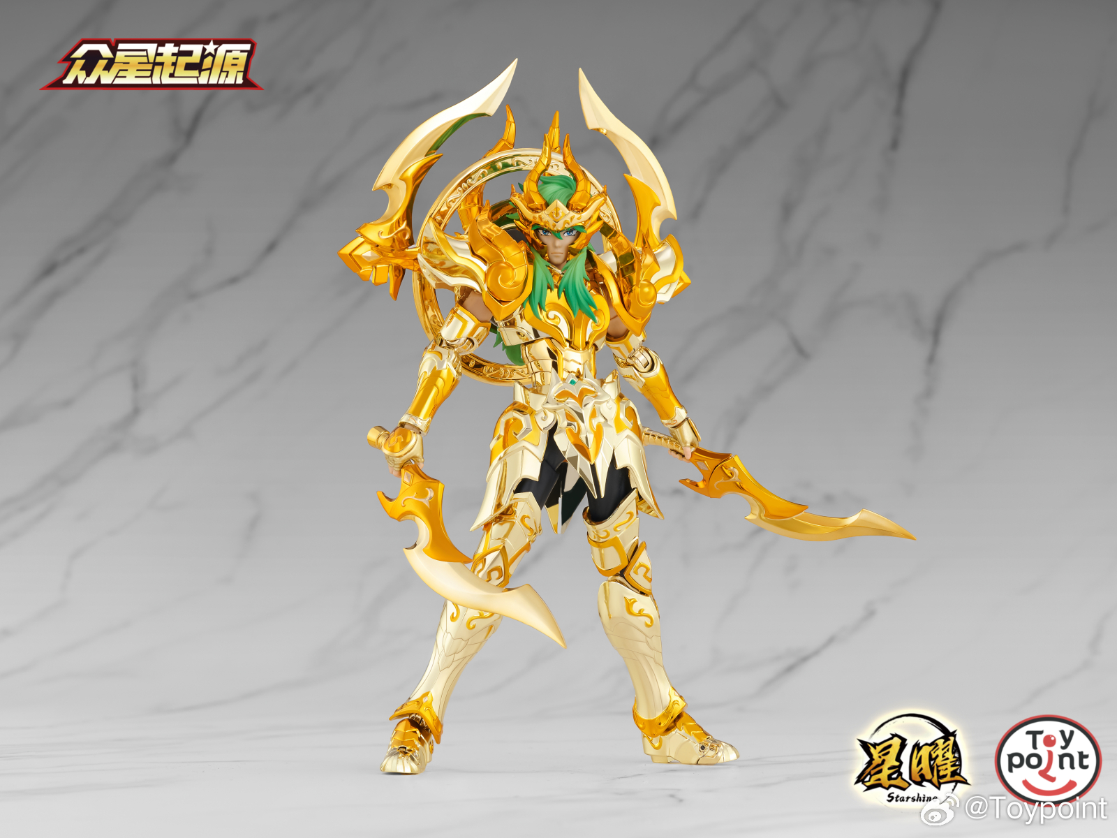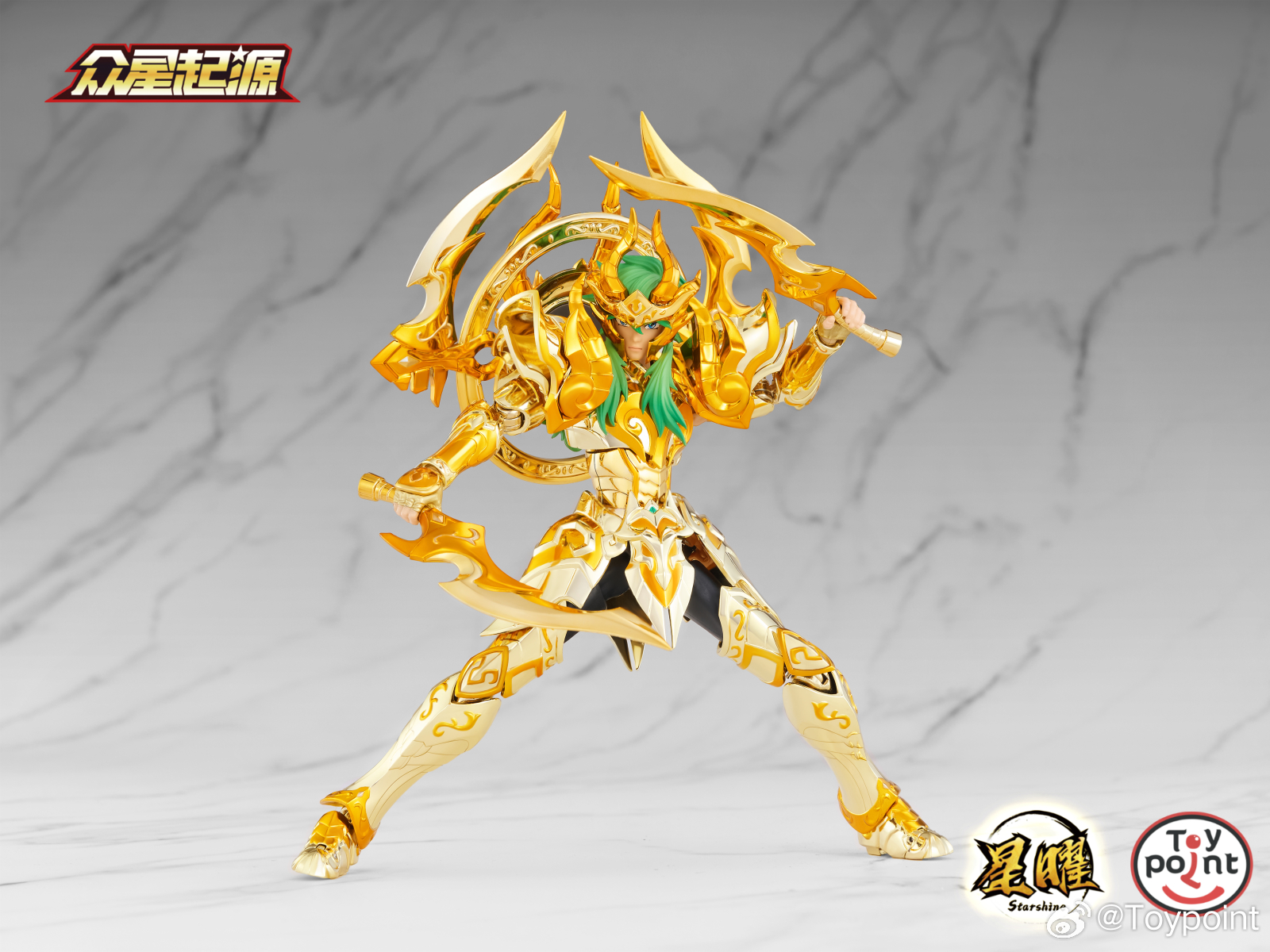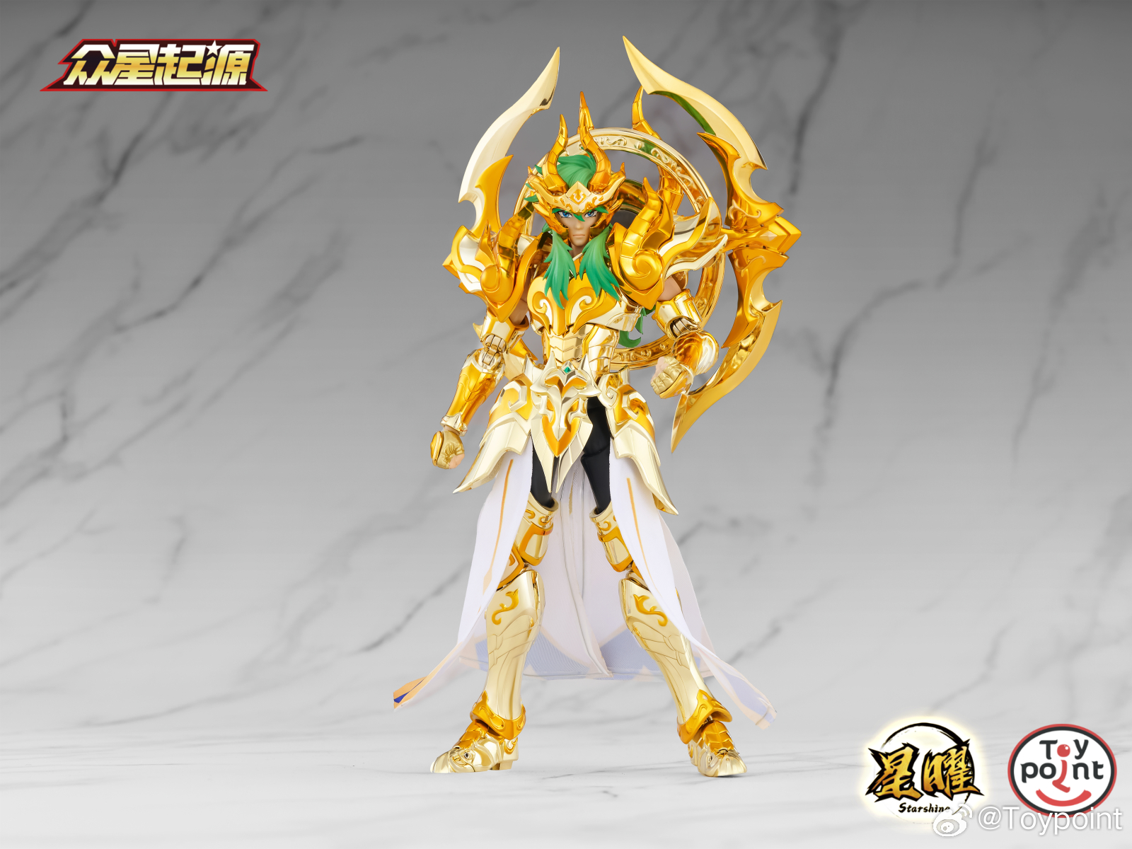Included accessories: a set of alloy armor, an articulated alloy body, a Capricorn-shaped stand, a set of hair, 5 interchangeable heads, 8 interchangeable hand types, and a wave base.